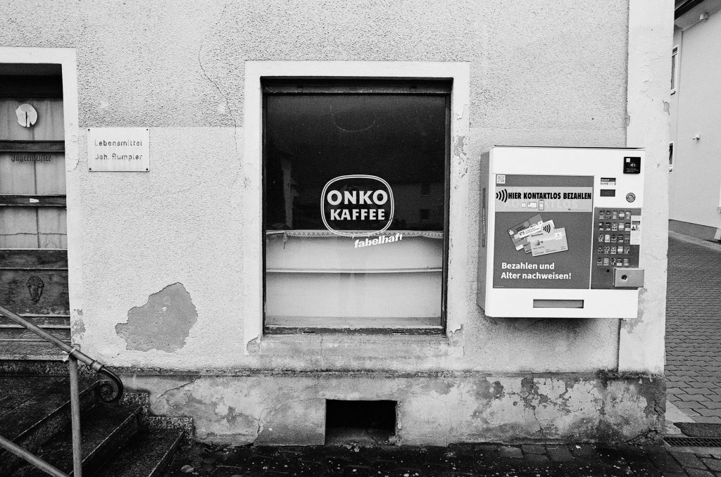 Das folgende Gebäude fand ich faszinierend. Auf der einen Seite hat es seine besten Jahre vermutlich hinter sich und bedarf einiger Pflege und Restauration. Der Lebensmittelladen hat schon lange nicht mehr geöffnet und „Onko Kaffee“ klingt nach einer vergangenen Zeit: