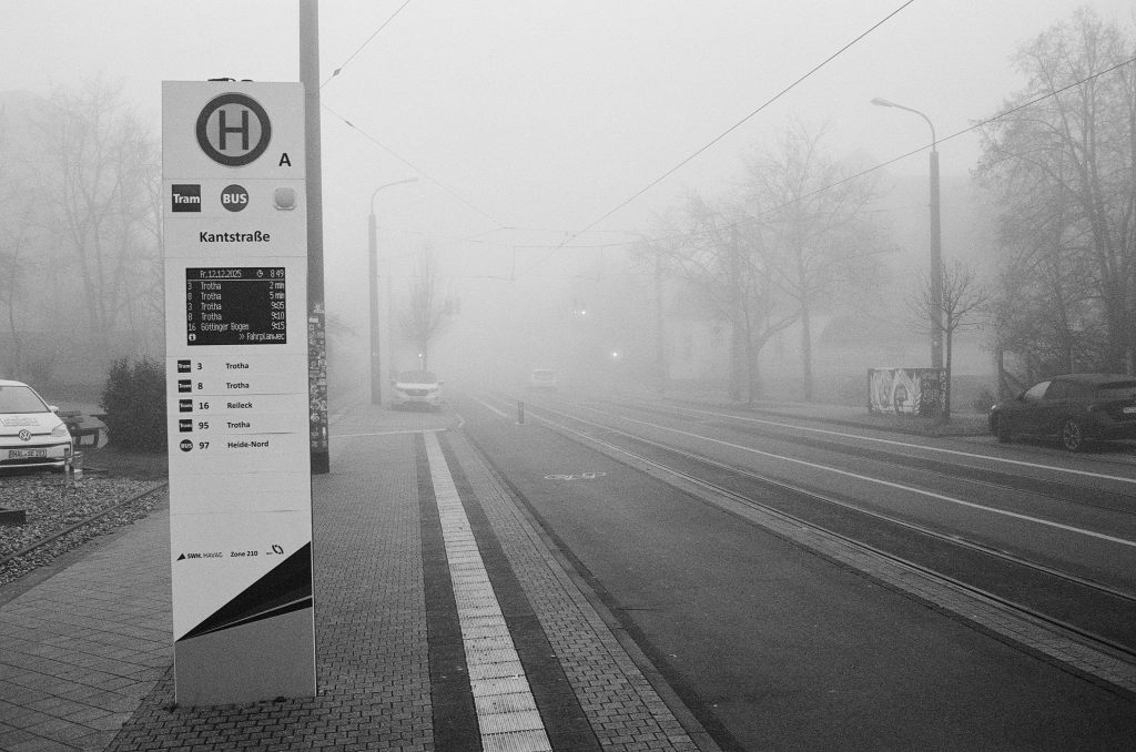 Und wenn ich mal mehr als einen Tag in Leipzig bin dann nutze ich gern die Gelegenheit zu einem Besuch bei unserem Sohn in Halle inkl. Übernachtung. Das ist ja mit der S-Bahn quasi um die Ecke. Und morgens beim Aufbruch gab es dann auch etwas Nebel: