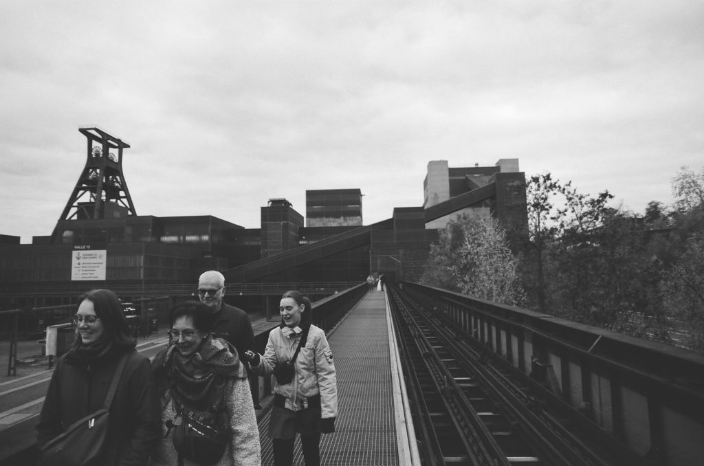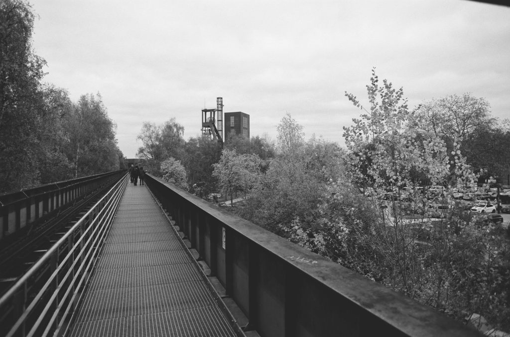 Manche Bilder sind etwas arm an Kontrast. Hier hätte wohl etwas mehr Belichtungszeit gut getan. Dennoch gibt das folgende Bild auch einiges von der Atmosphäre und Stimmung vor Ort wieder. Und ganz am Ende der Brücke ist auch wieder das Brautpaar zu sehen, das bereits im ersten Teil auf dem Lomo Metropolis abgelichtet wurde. Die Zeche scheint wohl auch eine gut angenommen Szenerie für Hochzeitsbilder zu sein.
