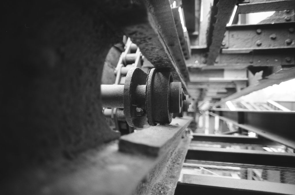 Wer Stahl und Strukturen mag kann auf der Zeche nahezu unendlich viele Perspektiven entdecken. So viele Blickwinkel, so viele große Objekte und viele kleine Details. Treppen, Räder und alte Technik. Entsprechend auch durchaus auch mit mehr oder weniger Rost.
