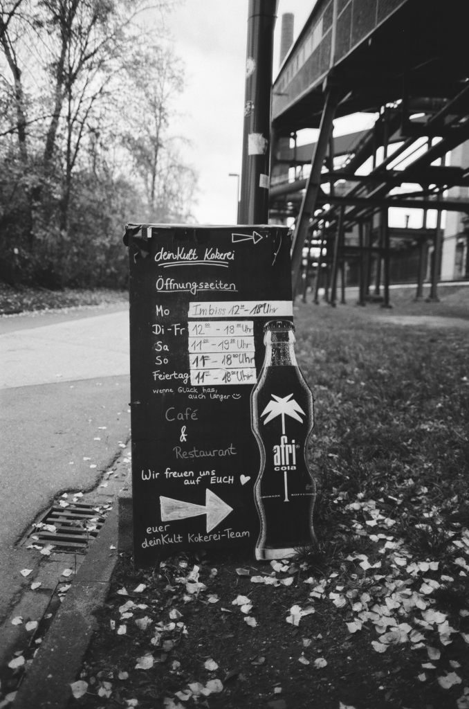Wer die Zeche besucht sollte die Cafes und Kneipen nicht verpassen. Der Zitronenkuchen am Bistro „Schacht 12“ ist wirklich phänomenal und die Atmosphäre von „DeinKult Kokerei“ ist was ganz Einzigartiges (siehe auch hier). Dort war zufällig auch eine Gruppe Menschen, welche früher mal selbst in der Zeche beschäftigt waren, sich gegenseitig den früheren Ort ihrer Tätigkeit genau zeigten („Das war meine Station!“) und sich Anekdoten erzählten. Da war es echt spannend ein bisschen zu lauschen.